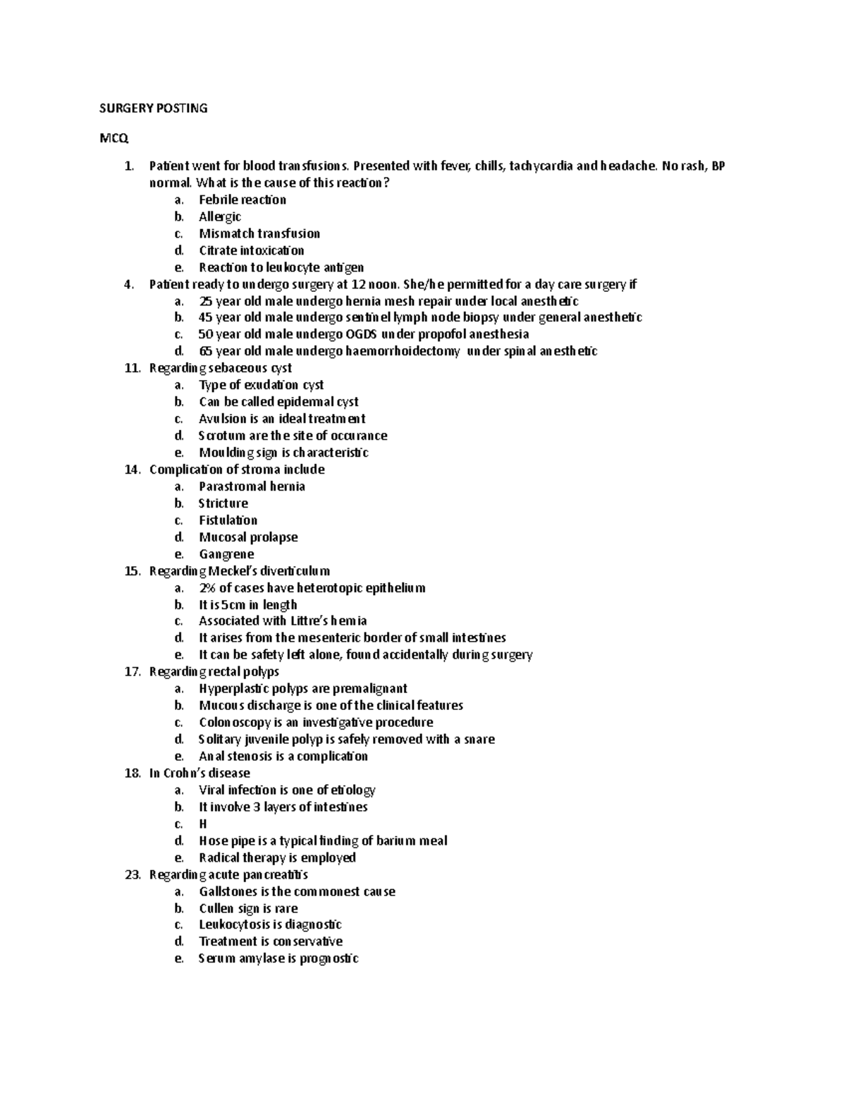 Surgery Theory Exam Questions Surgery Posting Mcq Pa琀椀ent Went For Blood Transfusions Presented Studocu